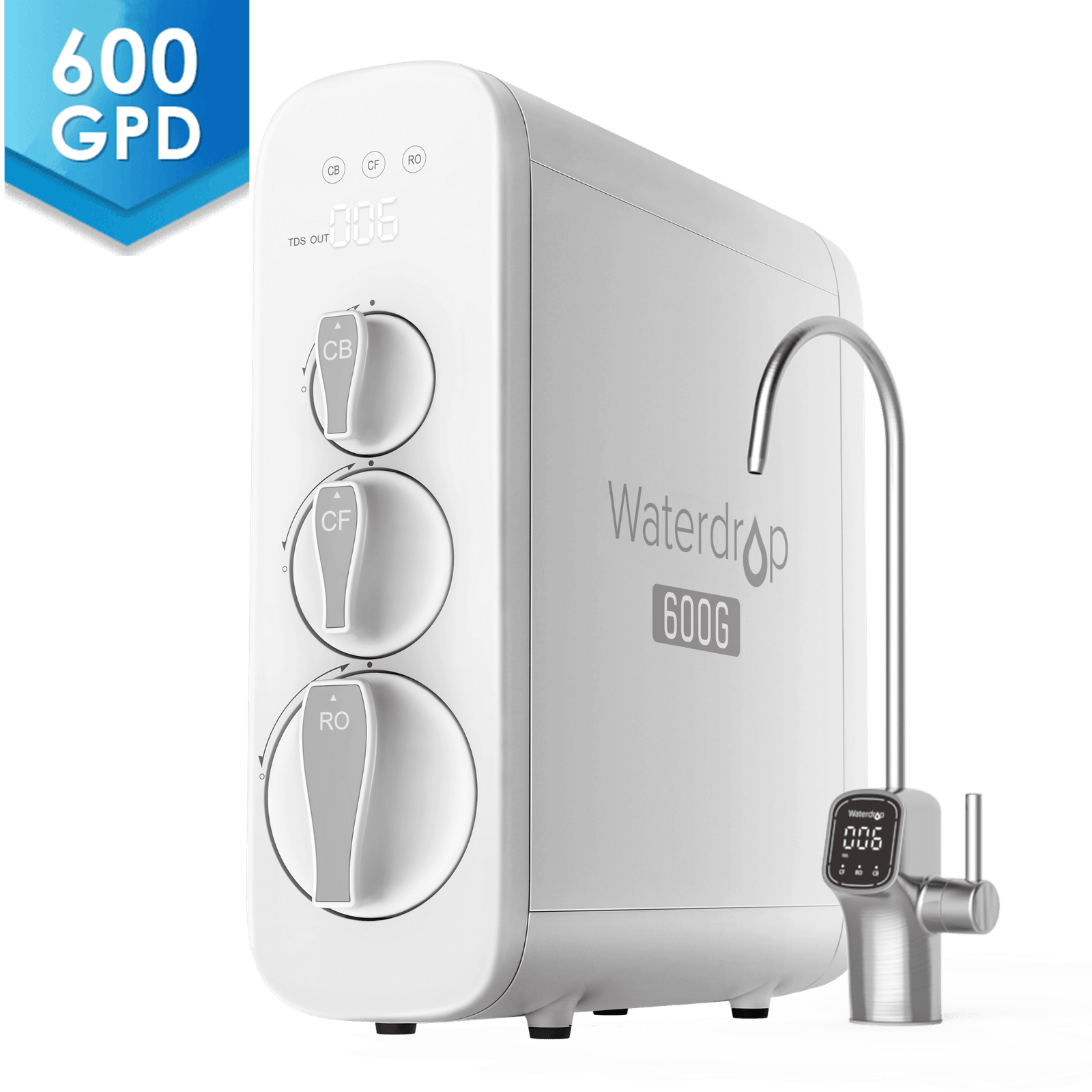 - 𝐓𝐚𝐧𝐤𝐥𝐞𝐬𝐬 𝐝𝐞𝐬𝐢𝐠𝐧: Waterdrop G3P600 reverse osmosis system has a stylish look. This tankless design saves 70% under sink space. You can change a filter in 3 seconds without moving the system or using any tools.